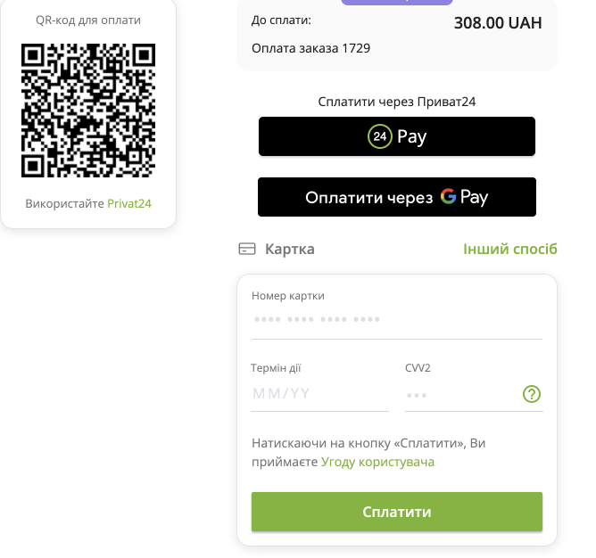 ОПЛАТА ЗАКАЗА ЧЕРЕЗ LIQPAY