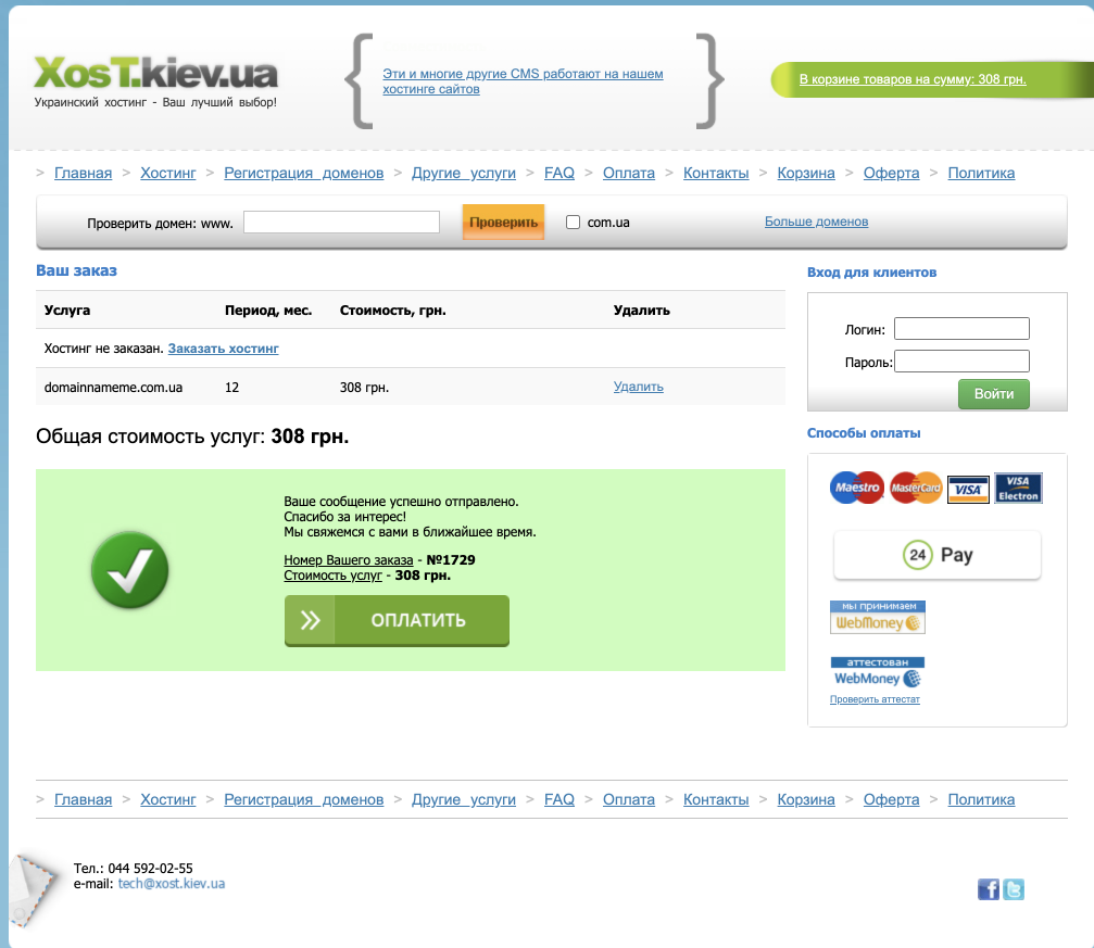 Перейти по ссылке http://xost.kiev.ua/payment.php